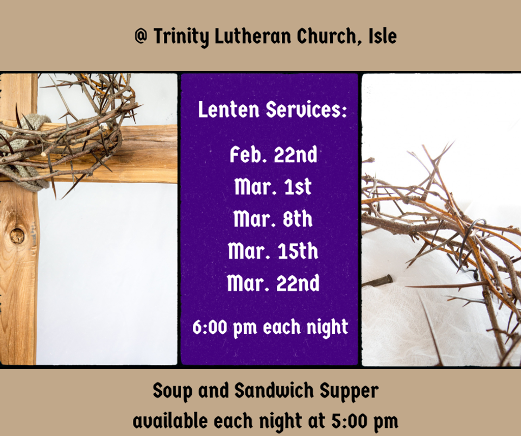 2/25-3/25 Wednesday Midweek Lenten Supper @ 5pm, Service @ 6pm